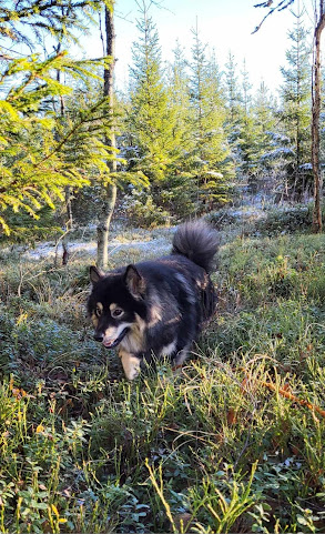 Eilen käytiin mökillä hakemassa polttopuita ja samalla metsässä kävelemässä. Molla, Fredi ja Toivo oli matkassa mukana.