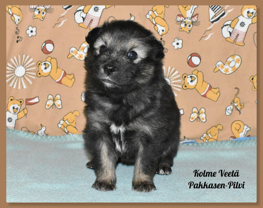 Kaislan ja Moskun pennut täyttää tänään jo 4 viikkoa! Rauhallisia pentusia ovat, kuten Kaislan pennut on aina ruukanneet olla. Yöt nukutaan hyvin ilman mekkalointia. Päivällä jo seurustellaan ja kiivetään syliin aina kun siihen on mahdollisuus. Kiinteää ruokaa syödään kaksi kertaa päivässä lihan kera. :) Uudet kuvat pennuista: