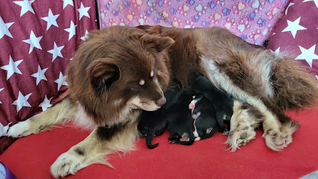 Sunnuntaina 27.4. Selma aloitti iltasella synnytyksen. Ensimmäistä pentua saimme odotella pidempään, mutta sitten loput pennut tulivatkin ihan tasaiseen tahtiin. Pentueeseen syntyi 1 narttu ja 3 urosta. Kaikki meni hyvin ja pennutkin tuntuu olevan tyytyväisiä, eli maitoa riittää. :) Tällä hetkellä yksi uros vielä olisi vailla omaa kotiaan! Mikäli pentu kiinnostaa laita sähköpostia: kolmeveeta@gmail.com tai soita 044-3556645 tai 044-3770406.